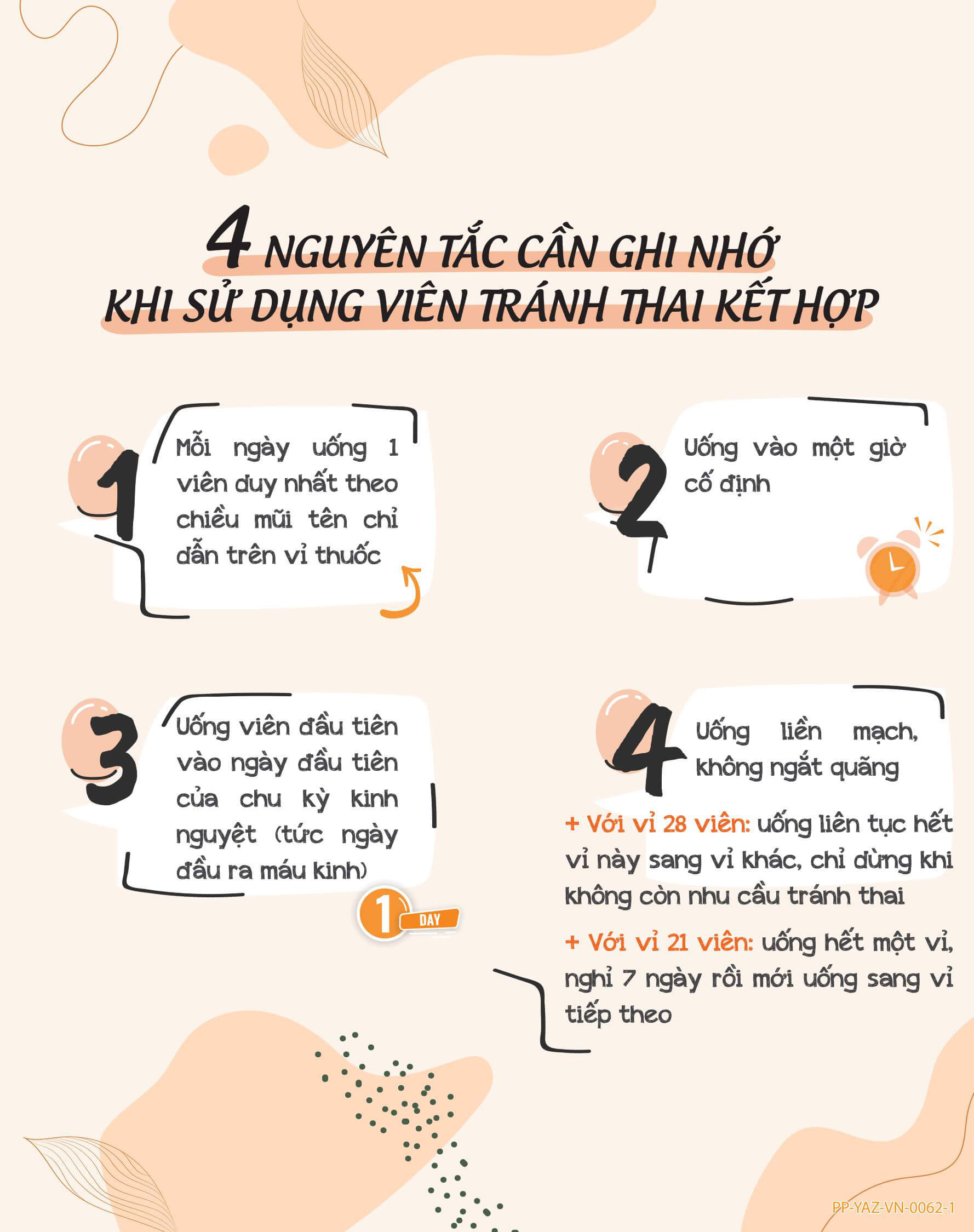 Qua đây có thể thấy, Viên tránh thai kết hợp không đơn thuần chỉ là một viên uống giúp ngừa thai, mà nó còn mang lại lợi ích cho sức khỏe sinh sản của chị em phụ nữ, trong đó có việc góp phần làm giảm nguy cơ thai ngoài tử cung. Và để việc sử dụng Viên tránh thai kết hợp phát huy được hết công dụng, các chị em cần tuân thủ theo một số nguyên tắc sau: